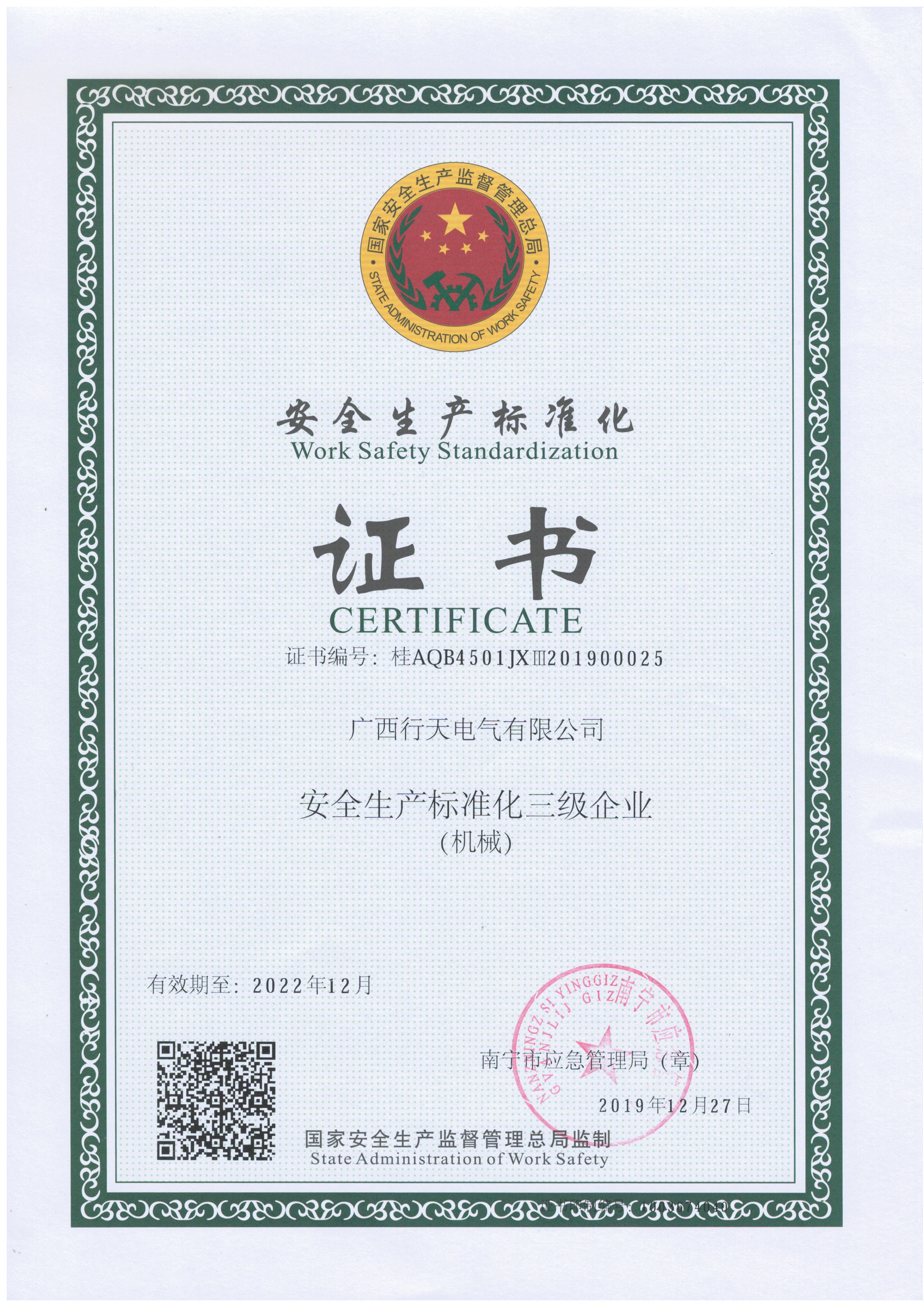 安全生產(chǎn)標(biāo)準(zhǔn)化證書(shū)