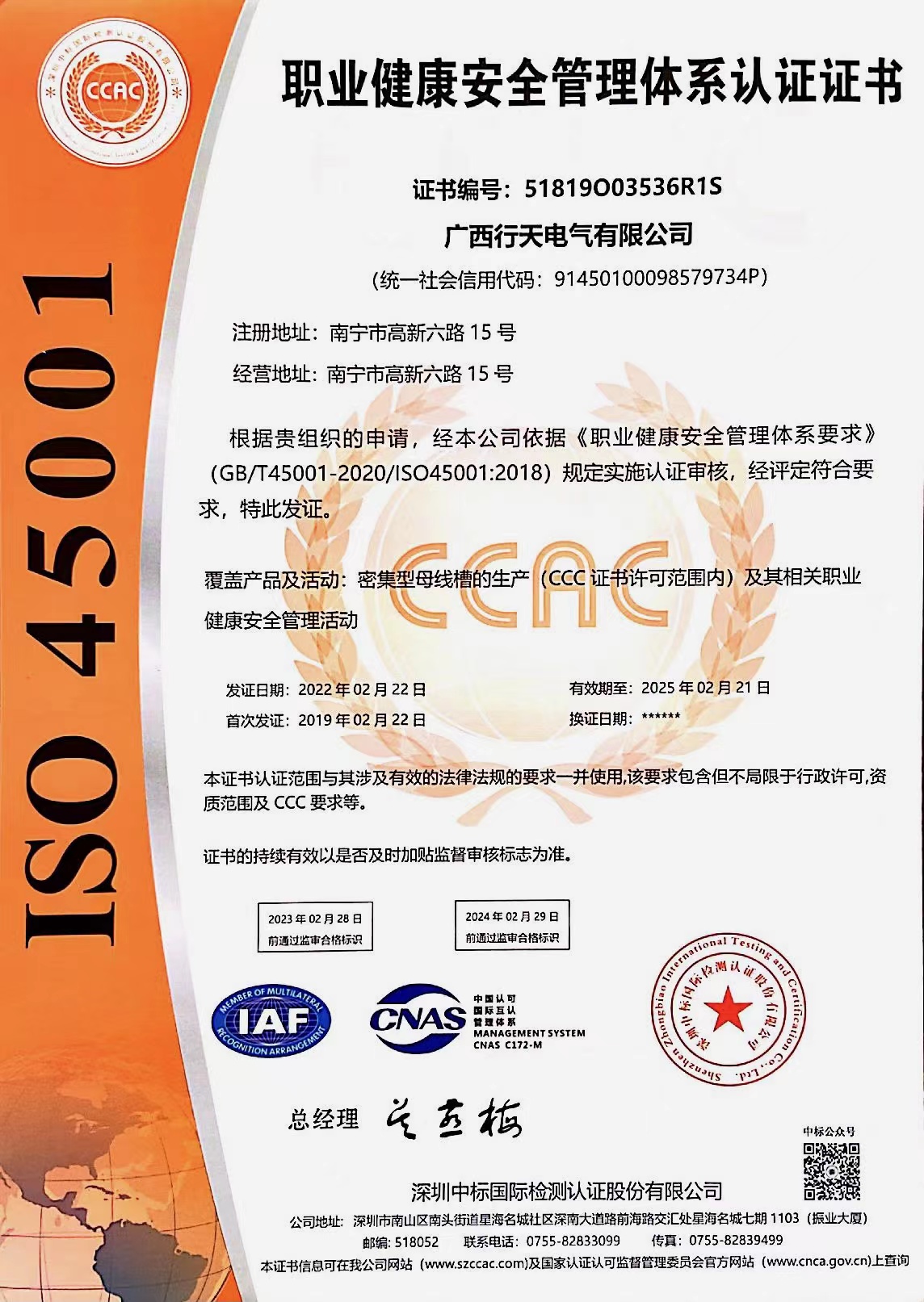 職業(yè)健康安全管理體系認(rèn)證證書(shū)-